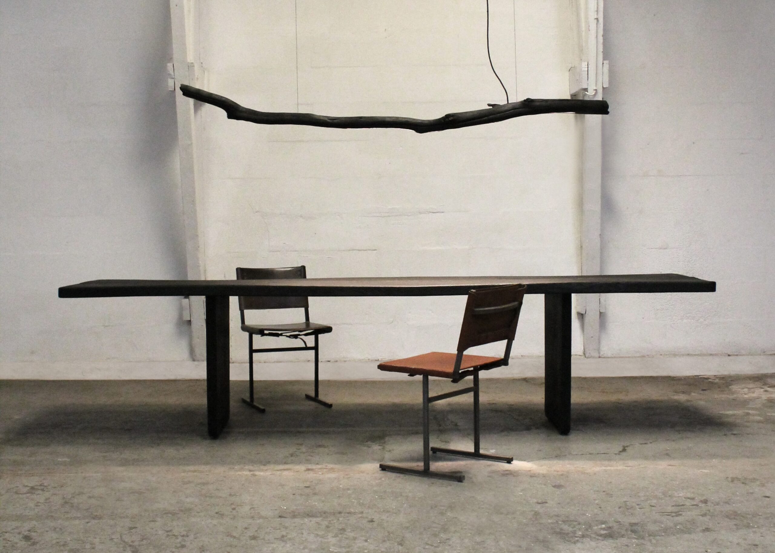 The Shokunin dining table celebrates the spirit of Japanese craftsmanship. As a reference to the values of Shokunin, the Japanese word for artisan, we treasure the temperament of the wood and the devotion required to create this object. The Shokunin dining table is made out of a single, hand picked, wood slice. Selected for quality and uniqueness, only sustainable European wood like Oak or Plane is used. We believe that locally grown wood fits our surroundings best and deserves to be seen in our homes.