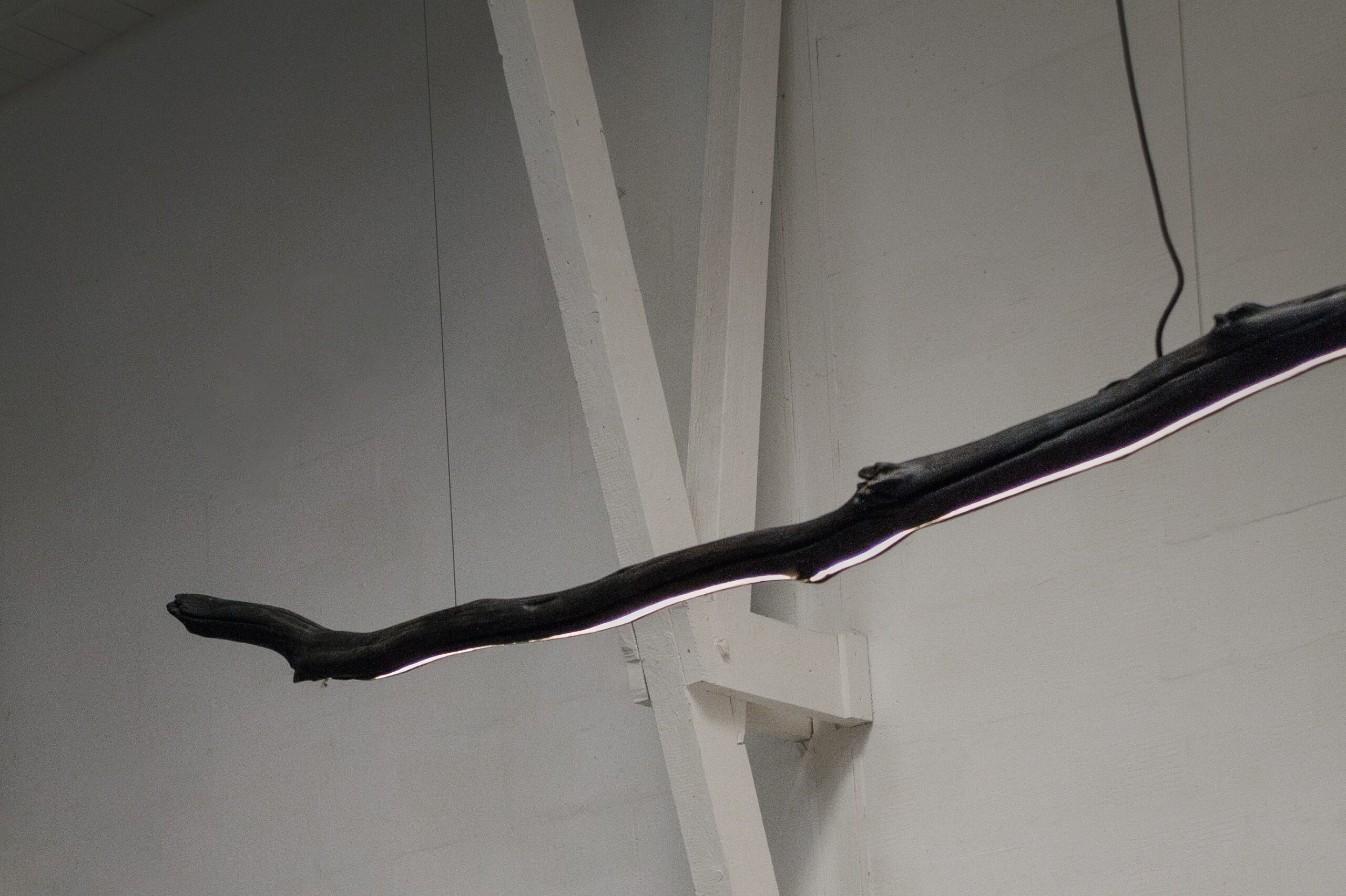 Trees outlive our lives, symbolize strength and fortitude, and are the epitome of connection with their network of offshoots. Despite their peculiar beauty, offshoots are often discarded after other parts of the tree are manufactured into new forms. By doing so, the dignity of the offshoots is wasted. Stubbornly yet controlled, the branches reach out for sunlight and bring life into a tree. The Burning Ego serves as an ode to the often neglected essence of the bough and its relationship with light and life. To accentuate the beautiful and muscular forms of the bough, the Shou Sugi Ban technique is applied. This ancient woodworking technique from Japan burns away the soft parts of the wood. By letting the LED follow the original form of the bough and using minimalistic suspension, the Burning Ego floats powerfully through mid air.