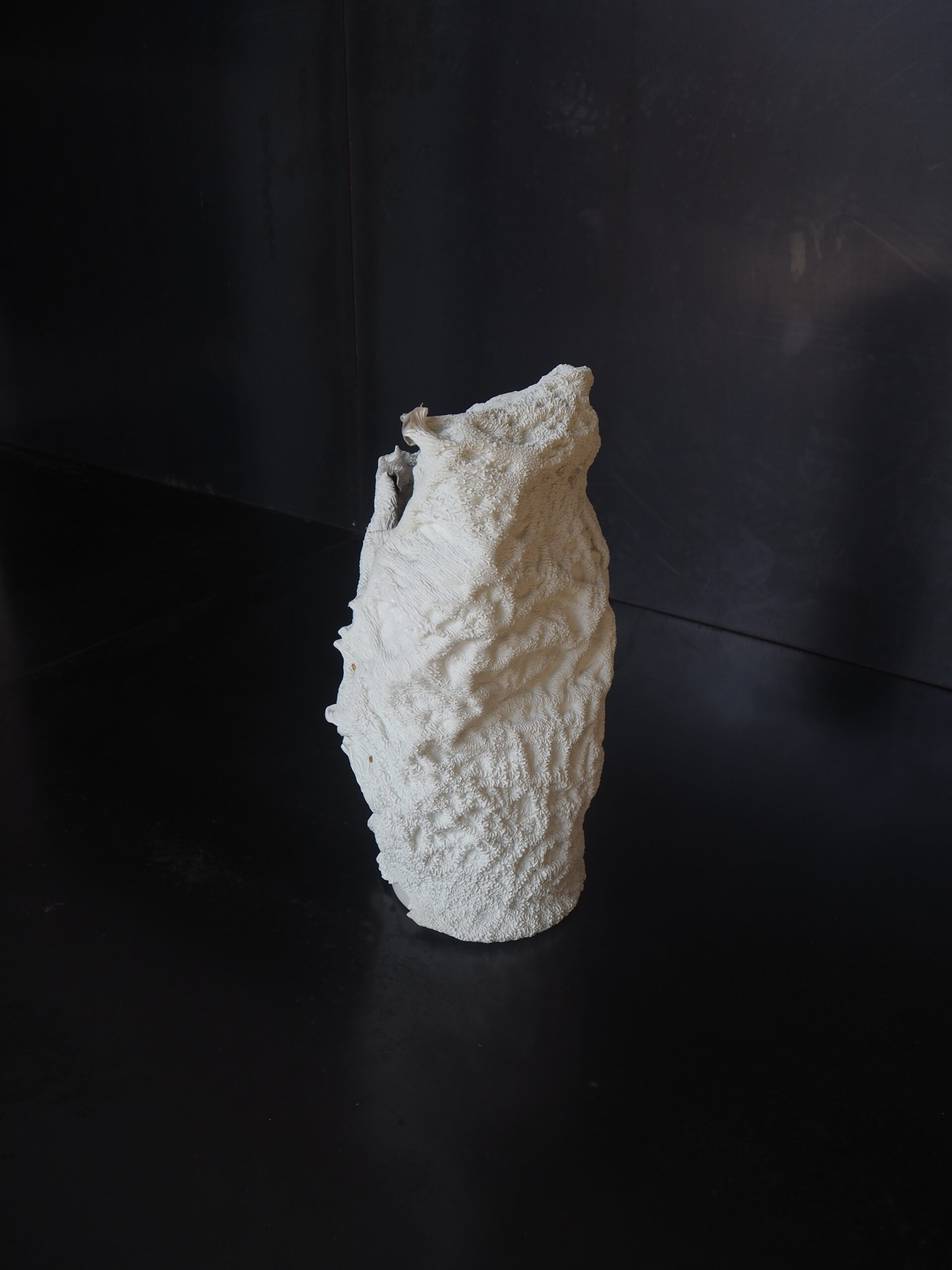 Inspired by the organic forms of coral and the movement of waves, the Coral Vase softens the line between nature and design. Daniëlle van Lunteren invites us to embrace the beauty in the imperfection. Daniëlle is fascinated by nature and perpetually seeks to incorporate the feeling of the outside world through her works. By experimenting with materials and techniques, she unravels the stories concealed behind each piece. Handcrafted in ceramic and wrapped in textured white lacquered leather, each Coral Vase is a unique expression of the artist’s dialogue with the material.